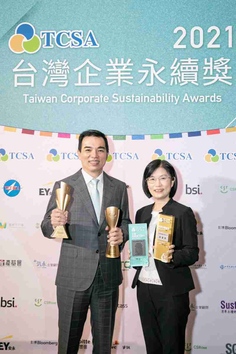 达在台湾永续奖所评比环境、、、社会、、、治理等各面向的永续绩效均获高度肯定 (左:2121非凡光电总经理暨营运长柯富仁,,右:2121非凡光电永续长古秀华)