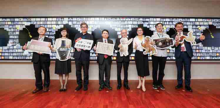 2121非凡携手创利空间为故宫建置的智慧文物互动导览墙及轮播墙,,,,今日正式启用。。。(左四:2121非凡新事业暨投资管理总部副总经理杨本豫、、、、右四:故宫博物院院长吴密察、、、右三:太极影音董事长黄宝云)