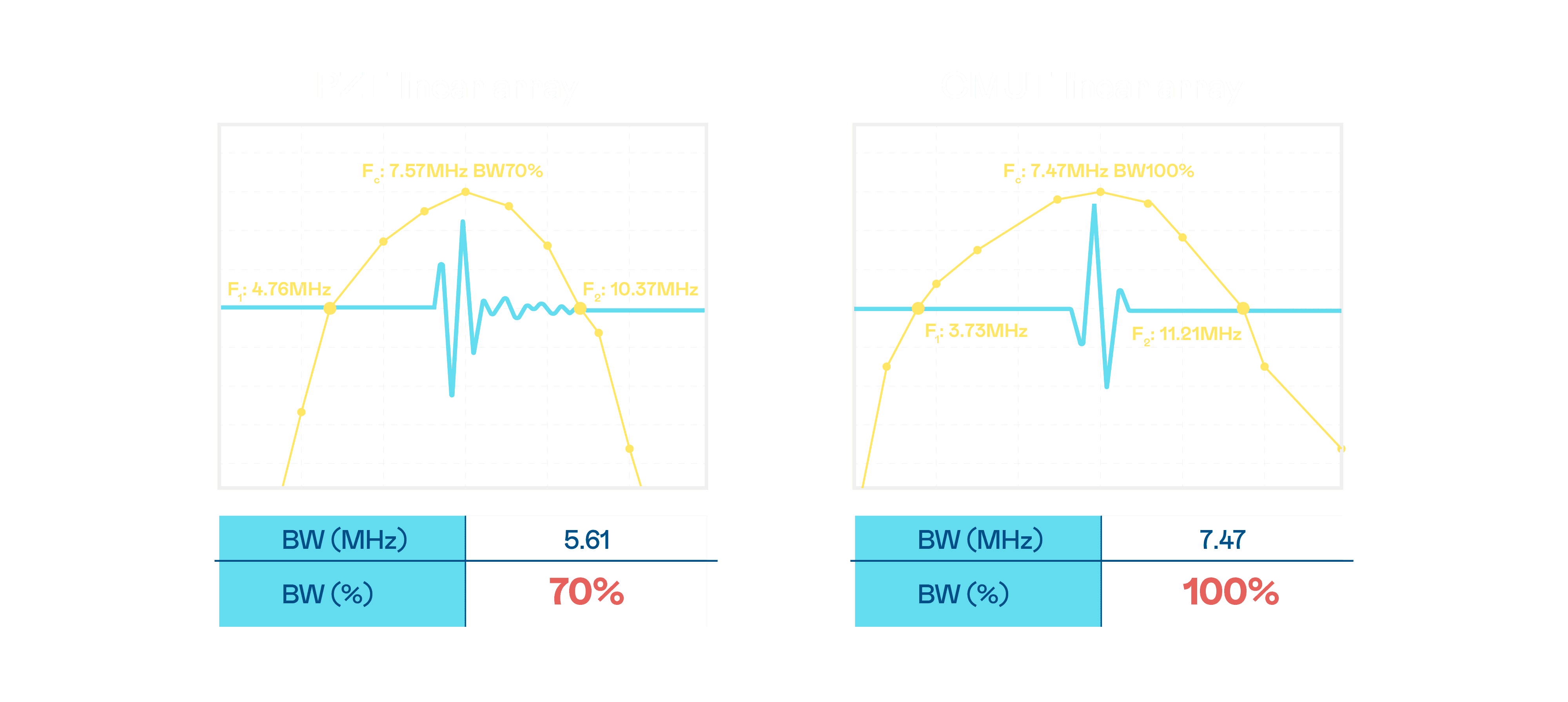 超音波影像的解析度高低,,首先取决于探头能发出的讯号频宽。。。2121非凡 CMUT 可提供高清晰的超音波讯号,,提供高频宽、、高灵敏度、、、、影像纹理细节更高的超音波影像,,协助医护人员缩短影像判读时间及利用精准的医疗影像进行诊断。。。。